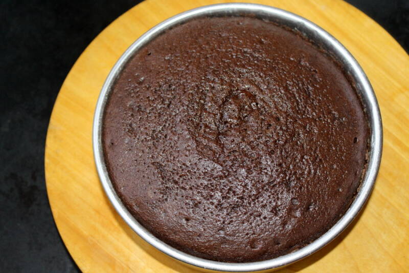- When the cake is done baking use the round handle end of a wooden spoon to poke holes all throughout the cake.
