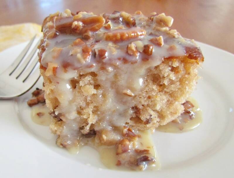 - Cake: Preheat oven to 350F. Grease a 9 x 13 baking dish with cooking spray.