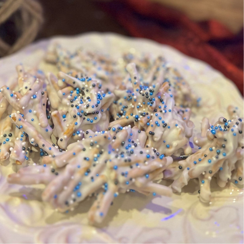 - Drop spoon fulls of the pretzels into stacks on a sheet pan covered with wax paper.