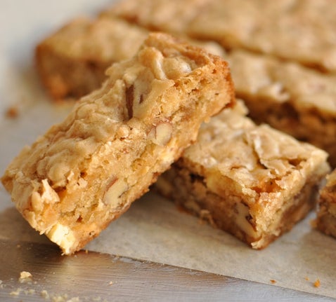 A rich delicious brown sugar and brown butter base gives these blonde brownies a delicious caramel flavor. Easy to whip up these blonde brownie bars are perfect for a sweet treat and even better topped a la mode (vanilla ice cream) for a delicious special dessert and even caramel sauce for an added punch!